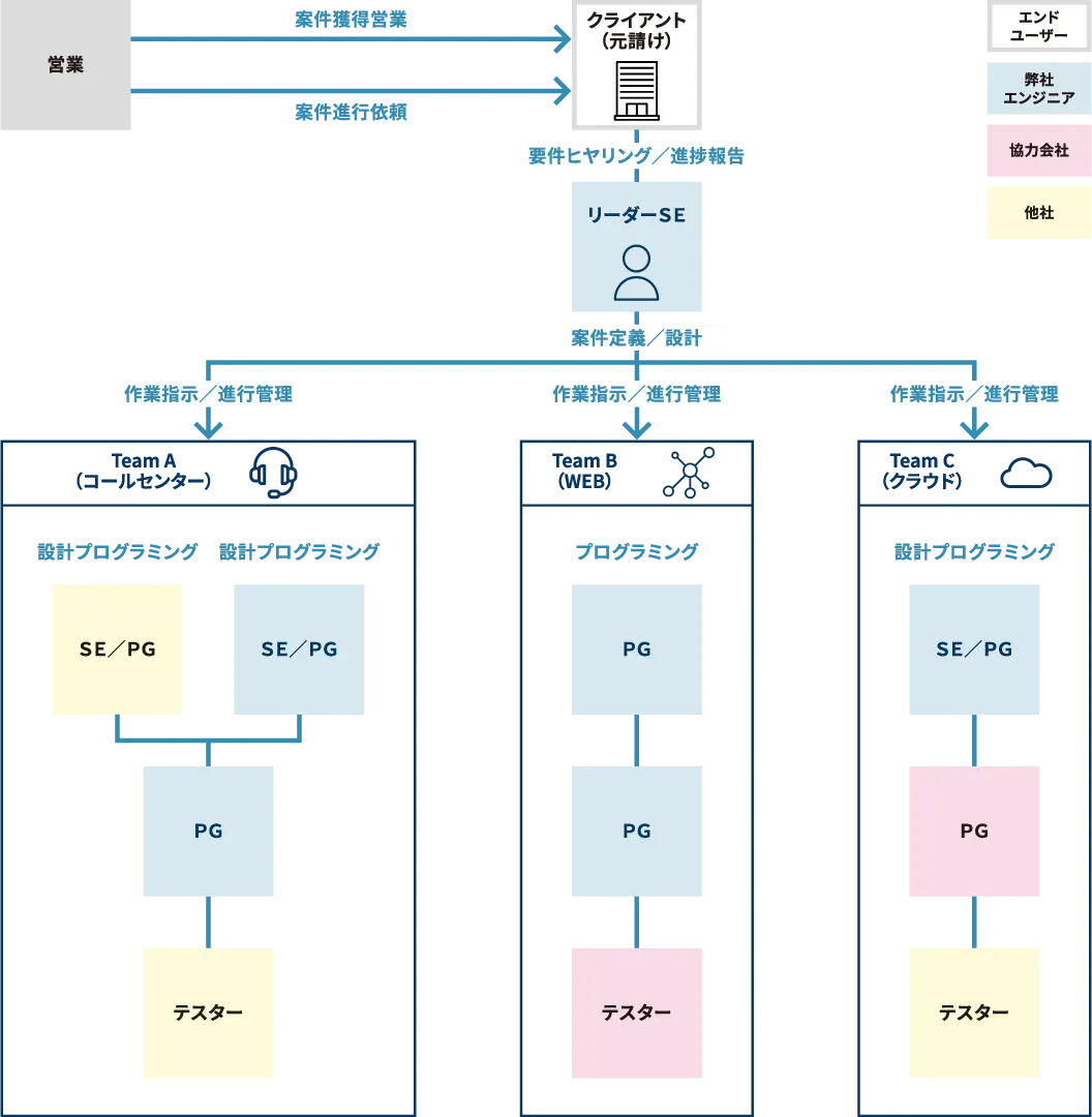 ▶ 元請直で、当社より社員5名(内1名は開発リーダ)、協力会社10名参画